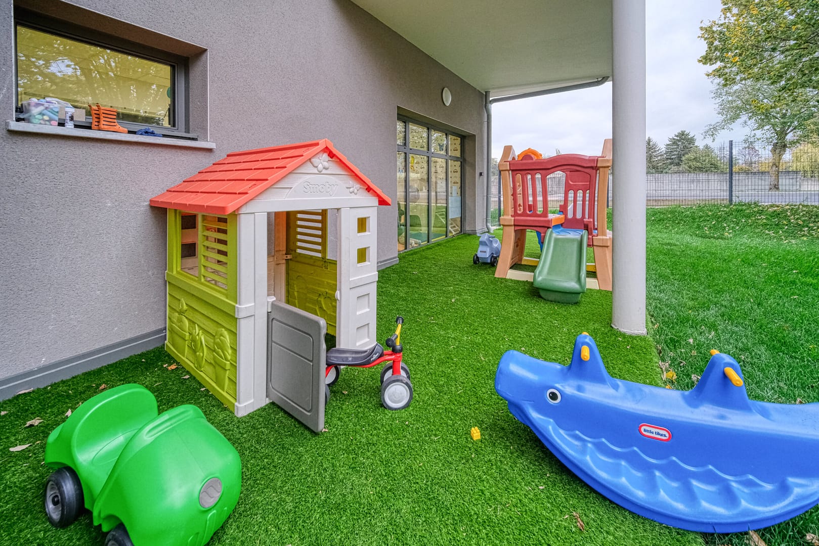 La Tit’ Crèche à la chance de bénéficier de 120 M2 de jardin vert et arboré.